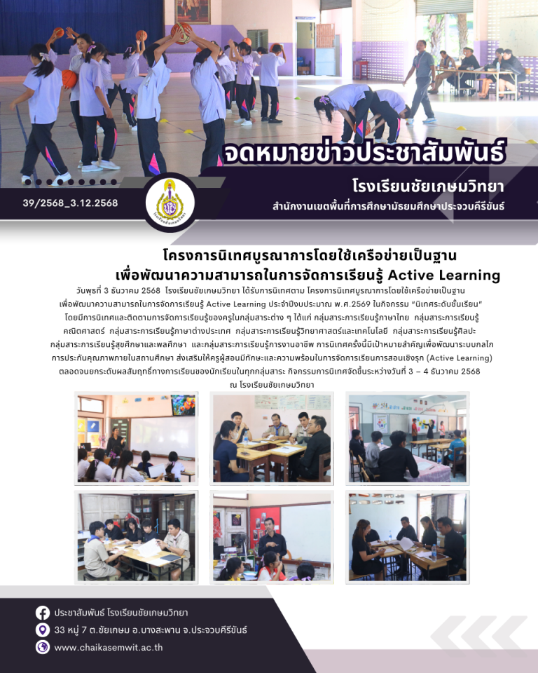 โครงการนิเทศบูรณาการโดยใช้เครือข่ายเป็นฐาน เพื่อพัฒนาความสามารถในการจัดการเรียนรู้ Active Learning