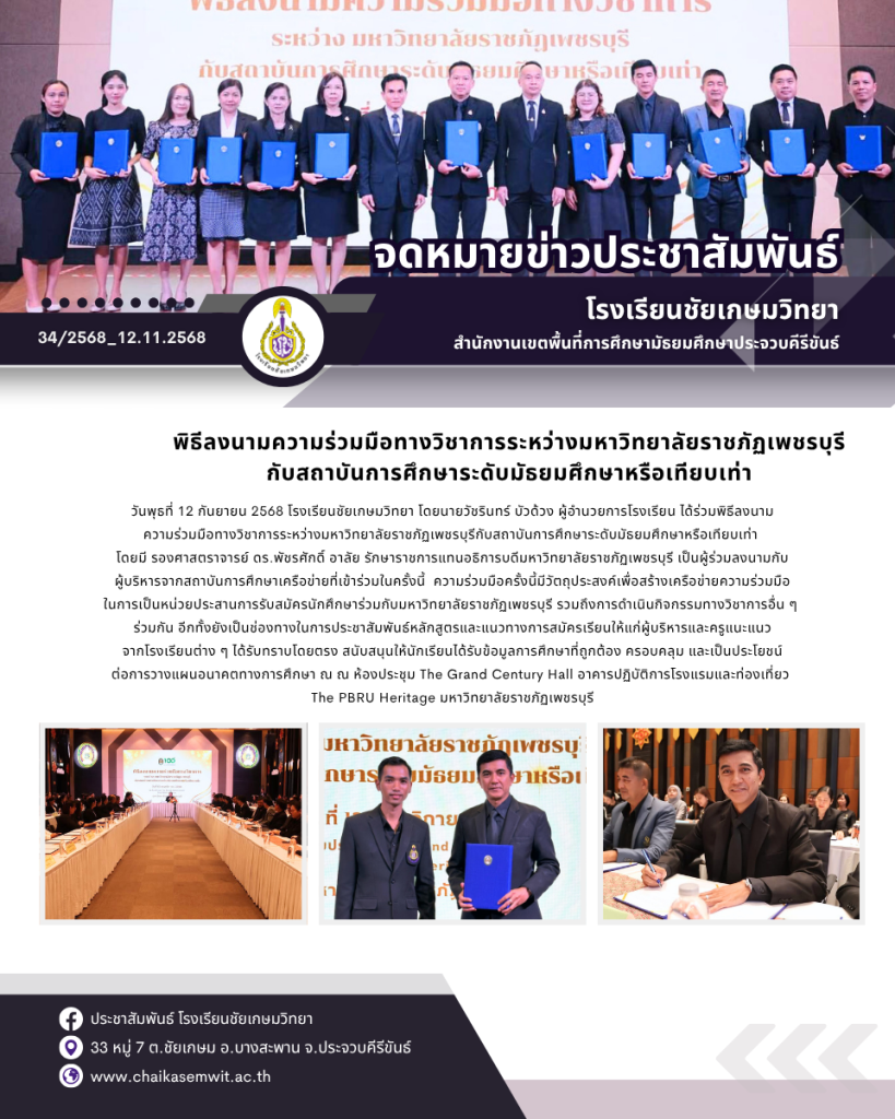 ข่าวสารสำหรับนักเรียนและผู้ปกครอง ประชาสัมพันธ์ เชิญประชุมผู้ปกครอง ภาคเรียนที่ 2/2568พฤศจิกายน 3, 2025พฤศจิกายน 3, 2025