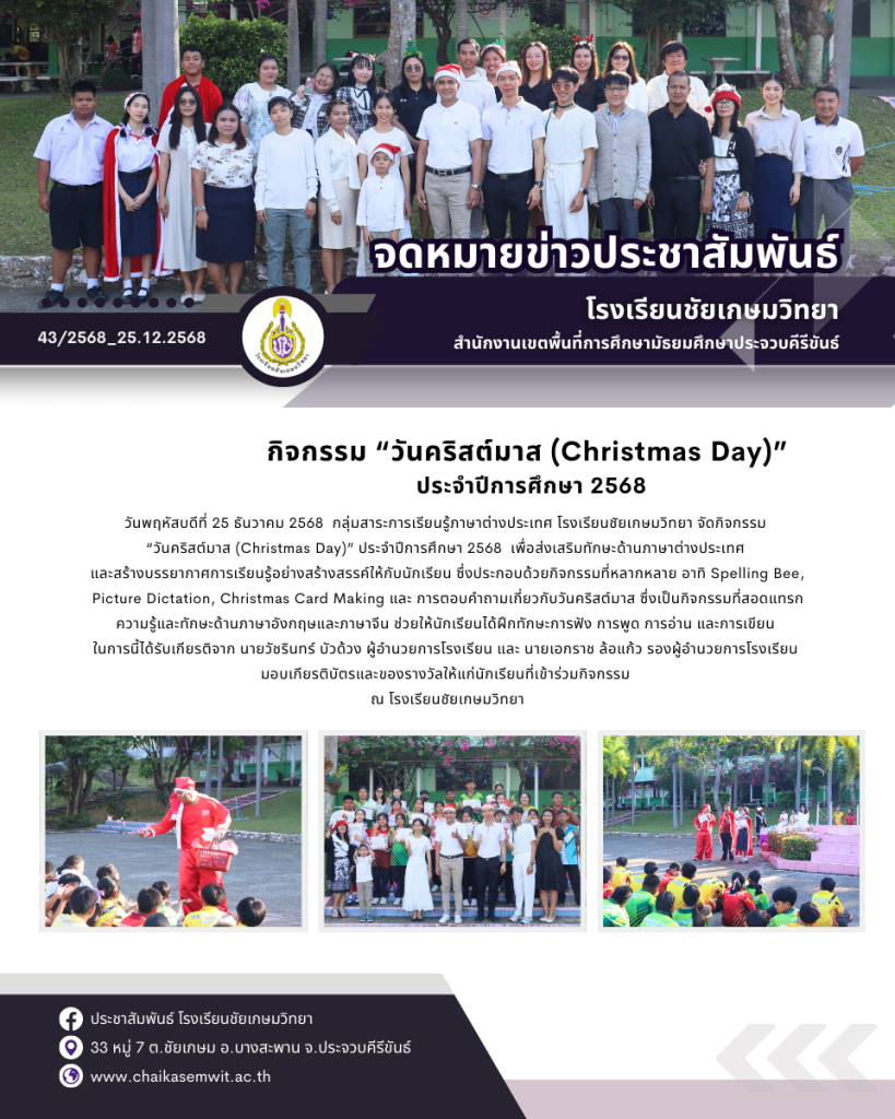 กิจกรรม โรงพยาบาลบางสะพานออกหน่วยบริการรับบริจาคโลหิต ณ โรงเรียนชัยเกษมวิทยาธันวาคม 9, 2025ธันวาคม 9, 2025