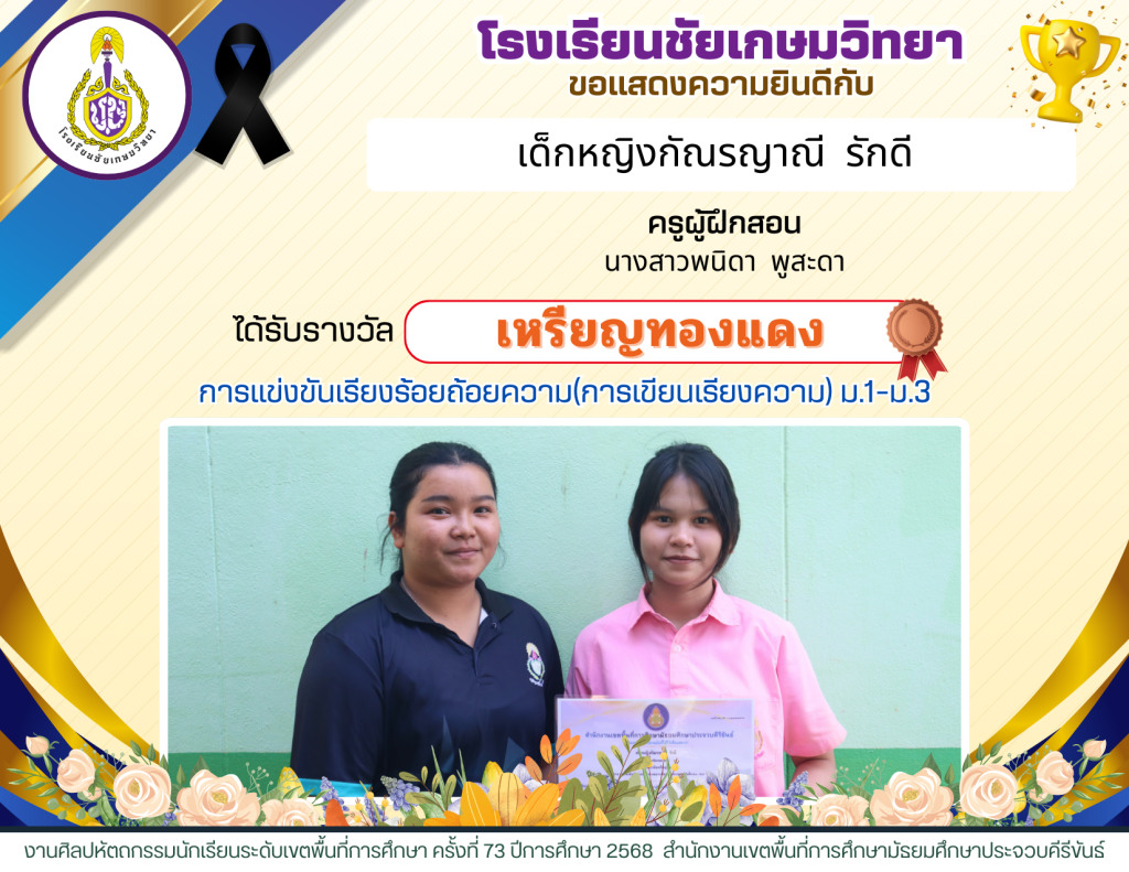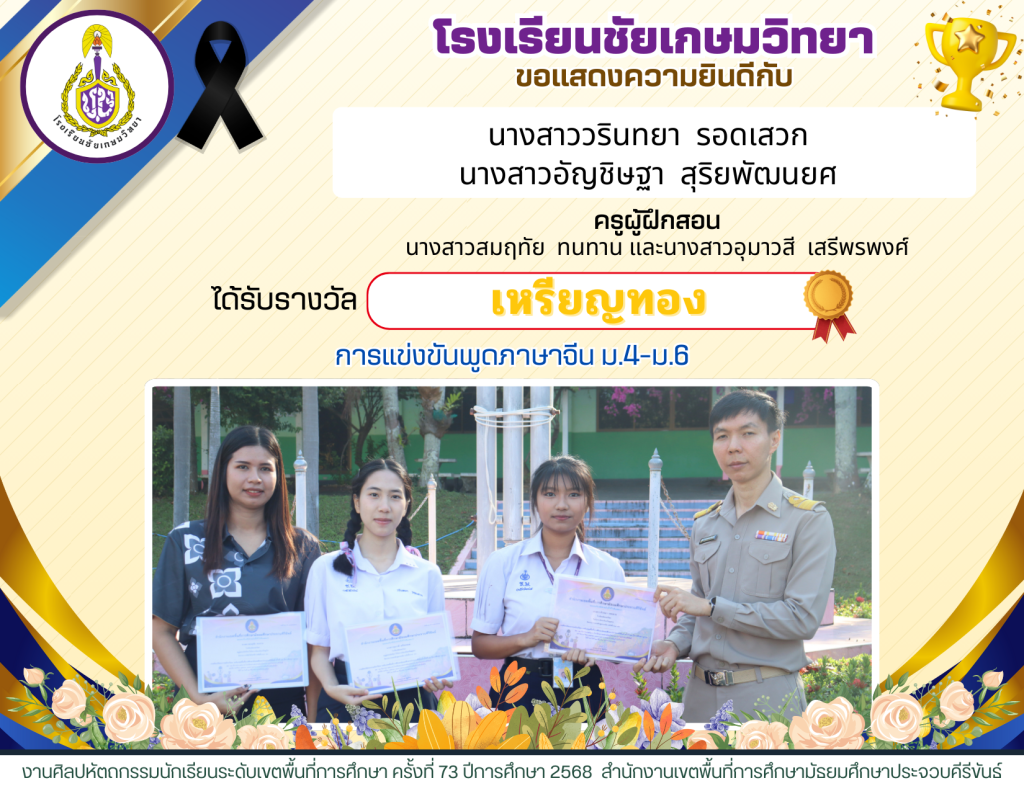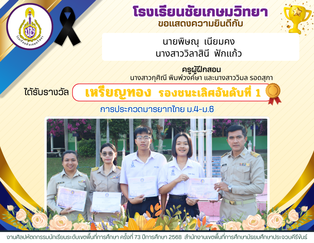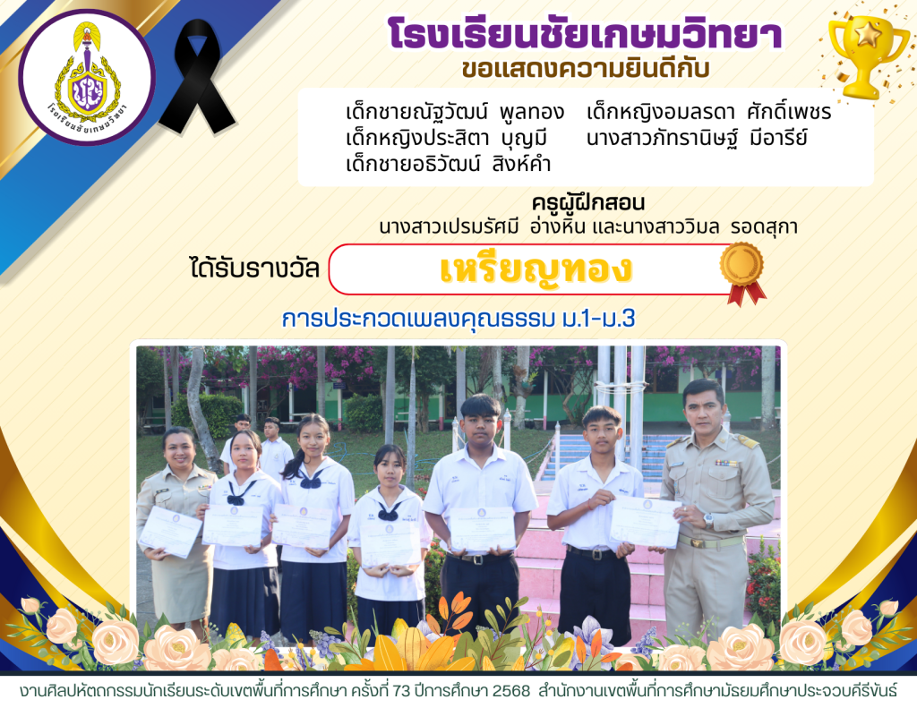 โรงเรียนชัยเกษมวิทยา ขอแสดงความยินดีกับ