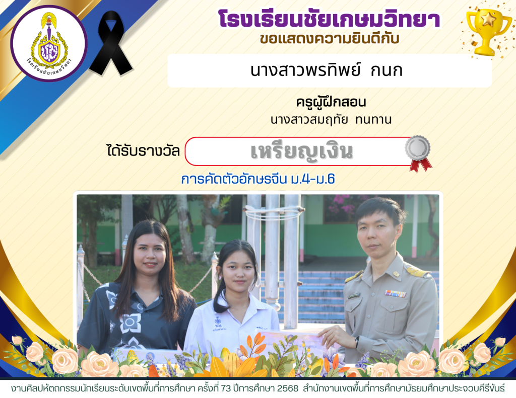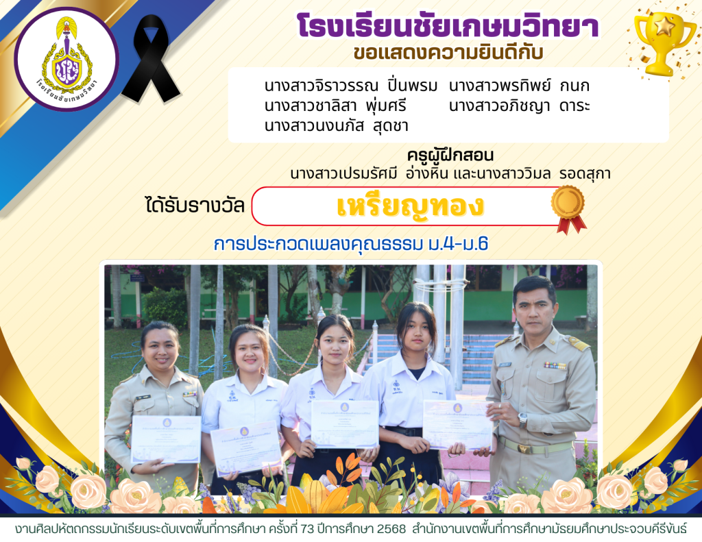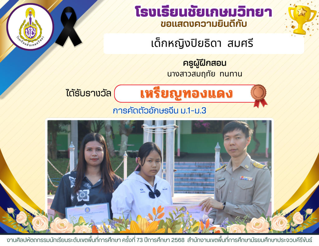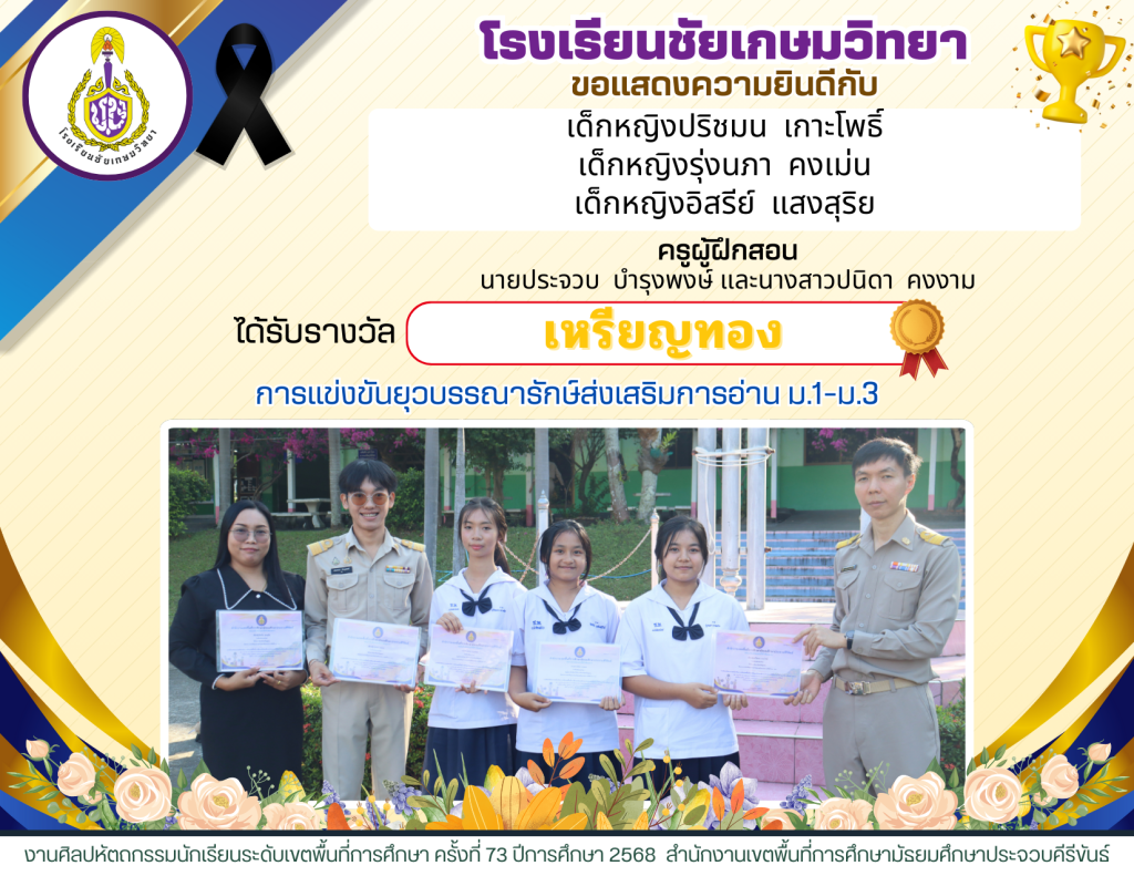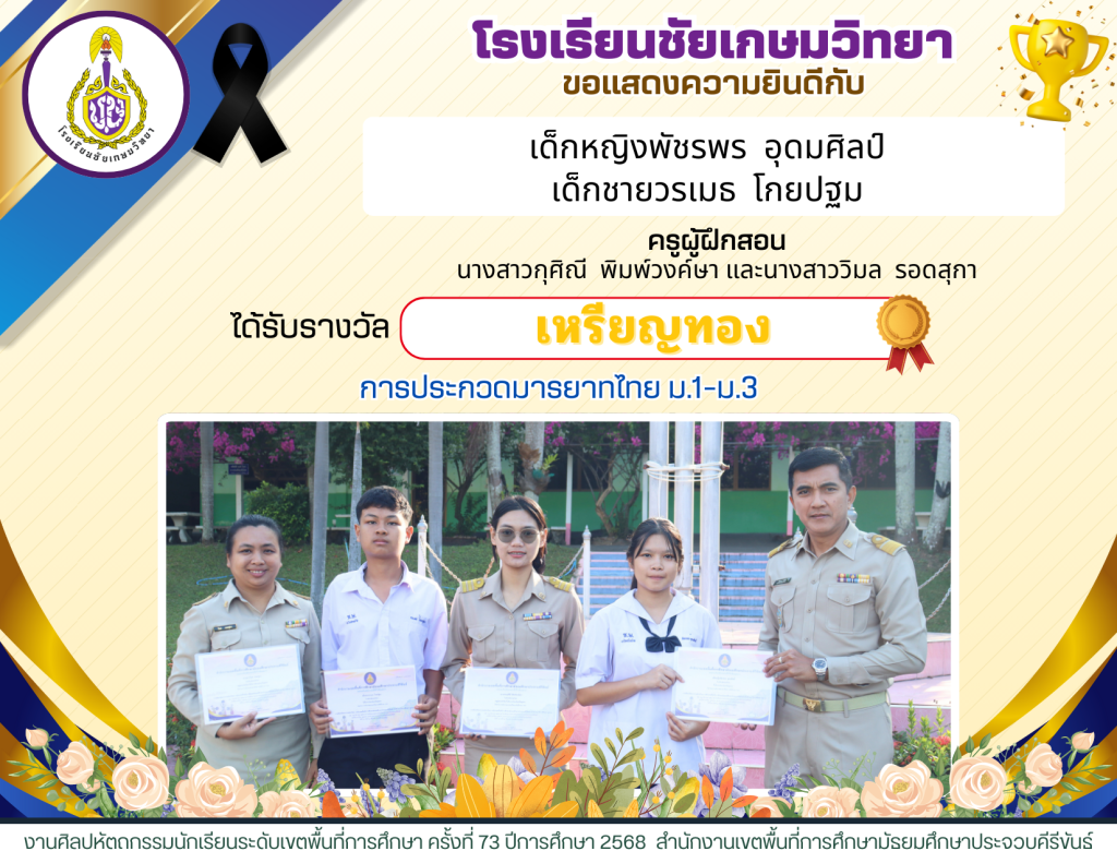 โรงเรียนชัยเกษมวิทยา ขอแสดงความยินดีกับ